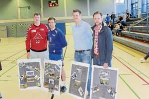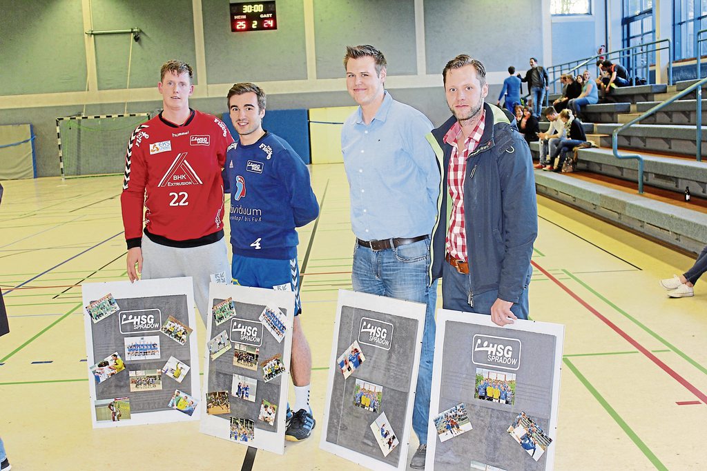 Torwart Daniel Habbe (links) und Dimitri Rausch (Zweiter von links) hören bei der HSG Spradow auf. Vorsorglich wurden auf Christopfer Lenke (Zweiter von rechts ) und Lars Strakeljahn verabschiedet, deren Abschied von der HSG II noch nicht ganz feststehen soll. Foto: BZ, Nolte
