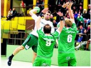 Dominant: Dimitri Rausch (beim Wurf) und die HSG Spradow konnten beim 28:23-Erfolg vom TV Großenmarpe nicht gestoppt werden.