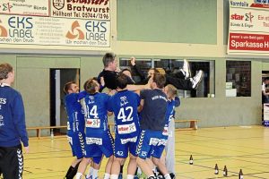 Die Spradower Spieler lassen ihren Trainer nach dem Klassenerhalt hochleben.