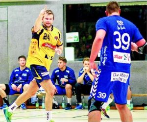 Fingerzeig: Rödinghausens Lukas Zwaka (l.) läuft nach einem erfolgreichen Tempogegenstoß an der verdutzten Spradower Bank vorbei in die eigene Spielhälfte zurück. Fotos: Ulrich Finkemeyer