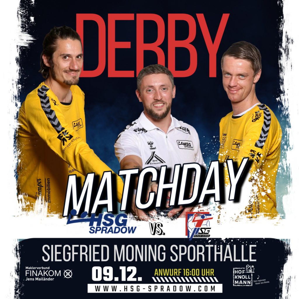Ein kleiner Reminder für alle: das Heimspiel gegen Bünde-Dünne wird am Samstag, 09.12., bereits um 16:00h in der Siegfried-Moning-Halle angepfiffen! Das Vorspiel bestreitet unsere D-Jugend um 14:00h.