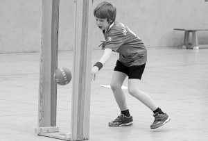 Koordination und Gefühl sind von Spradows Jan Petring gefordert gewesen, um den Handball durch den Kasten zu prellen.
