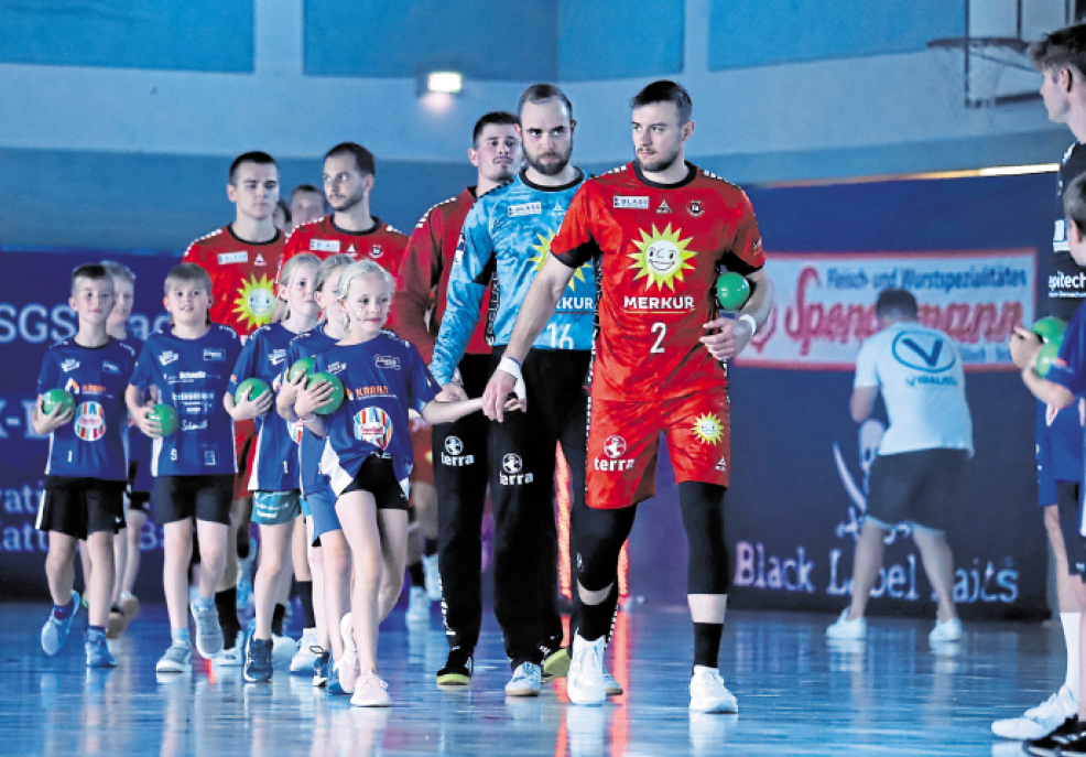 Bünde. Für die Zuschauer und Zuschauerinnen (400 zahlende vermeldete der Verein später) und natürlich für die Einlaufkinder waren es tolle Momente, als die Siegfried-Moning-Halle abgedunkelt wurde, der Lautstärkeregler der Musikanlage nach oben gezogen und Kunstnebel eingeblasen wurde. An den Händen der Profis des Zweitligisten TuS N-Lübbecke und der Spieler von Drittligist TSG A-H Bielefeld liefen die Kinder aufs Spielfeld, wo sich alle den erwartungsfroh applaudierenden Handballfans vorstellten. Das Topspiel als krönender Abschluss beim Spradower Handballtag konnte beginnen.