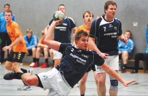 Freie Fahrt für »Freddi« Iffland (am Ball): Der Kreisläufer der HSG Spradow hat die Gegenspieler von Eintracht Gadderbaum längst stehen lassen und erzielt vom Kreis einen Treffer. Teamkollege Torben Sturhan (rechts) schaut zu. Foto: Lennart Lagmöller