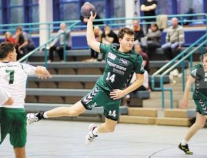 Im Mittelpunkt hat Spradows Julian Brandt nicht nur in dieser Szene gestanden. Er war Dreh- und Angelpunkt im Spiel der Handball-Landesliga gegen den TV Großenmarpe und hatte mit sechs Treffern großen Anteil am 29:25-Sieg. Fotos: Gerrit Nolte