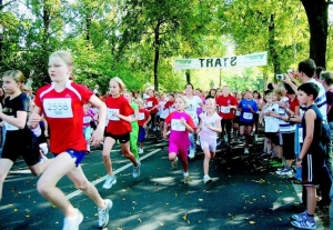 Ab geht das Rennen: Unter den schattigen Bäumen in Randringhausen gingen die Läuferinnen und Läufer auf die ersten Meter. Hier ist das große Feld der Schülerinnen über 2,5 Kilometer gestartet. Fotos: Ulrich Finkemeyer
