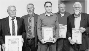 Ausgezeichnet: Vorsitzender Horst Droese (Zweiter von links) ehrte die treuen Vereinsmitglieder (von links) Horst Mischok, Sebastian Brandt, Dieter Ransiek und Friedhelm Hanna.