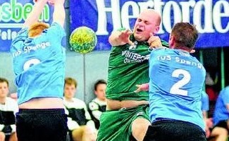 Der Blick auf die Auswechselbank sagte viel aus über die Bedeutung des Spieles. Während auf der Spenger Bank neun Spieler saßen, war HSG-Trainer Michael Meier mit drei Spielern ziemlich allein. "Leider können wir hier nur eine Rumpfmannschaft aufbieten", sagte Meier. Doch die wenigen Gäste hielten lange gut mit (3:2 und 4:4) und gerieten erst nach 19 Minuten mit 7:9 in einen größeren Rückstand. Zum Seitenwechsel beim Stand von 11:17 aus Spradower Sicht, und auch danach beim 20:13 für Spenge in der 39. Minute, sah es so aus als hätte Spenges "Dritte" die Kreismeisterschaft unter Dach und Fach. Gestützt auf den guten Dominik Ott im Tor, verkürzte Spradow II bis auf 20:23. Markus Frobieter, Gunnar Heise, Alexander Drosdow und Philipp Rausch brachten mit ihren Treffern den Gast bis auf Schlagdistanz an den Favoriten heran. "Leider waren wir dann mit der Kraft am Ende." Für Trainer Meier war die Niederlage mit 22:29 letztlich ein paar Treffer zu hoch ausgefallen.