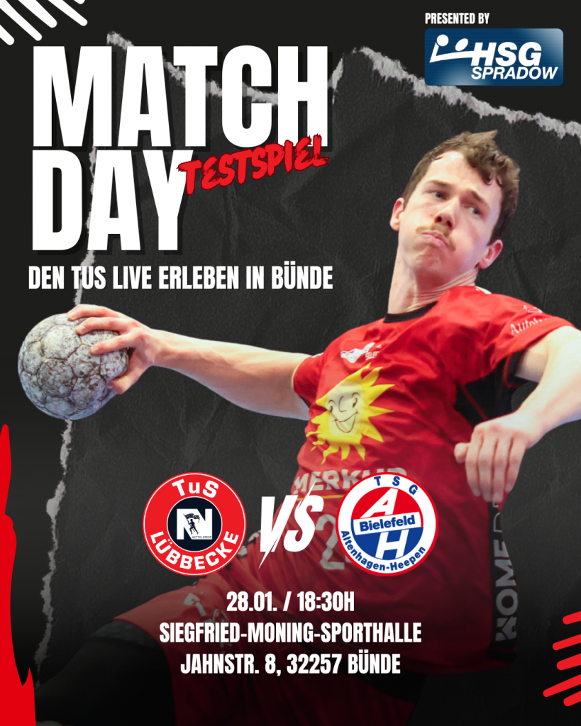 Für den TuS ist es der letzte Test vor dem Start in die Rückrunde, deshalb dürfte es sehr intensiv werden“, sind Wetzlar und seine Spradower schon gespannt. Der TuS N-Lübbecke mit Trainer Davor Dominikovic wird u. a. mit Kapitän Jo-GerritGenz, Yannick Dräger, Sven Weßeling, Alexander Schulze, Jacob Lundahl, und Lutz Heiny in Bünde antreten, die TSG A-H-Bielefeld um Nils Strathmeier, Simon Strakeljahn, Jacob Broyer, Malik St. Claire und Coach Niels Pfannschmidt stieg mit zwei klaren Siegen gegen Habenhausen (36:24) und bei der HSG Varel (38:28) ins neue Jahr ein und wird sich für den Vergleich mit dem Zweitligisten etwas vorgenommen haben.